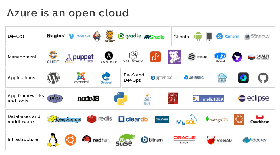 Use familiar and trusted open-source technologies and tools from the broadest range of operating systems, programming languages, databases, frameworks and devices that Azure supports.